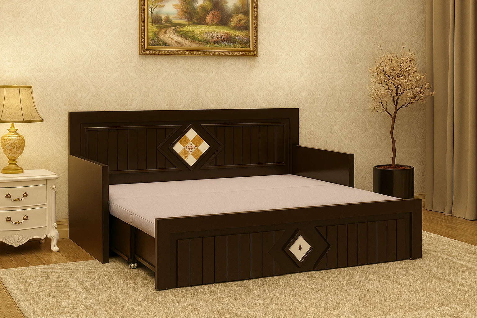 Aspire sofa cum bed combines thoughtful design with everyday practicality. Its smooth sliding system converts it effortlessly from a comfortable sofa to a spacious bed. Built from strong HDF and solid sal wood, and layered with premium foam and soft fabric, it provides durability, comfort, and refined style for modern living.