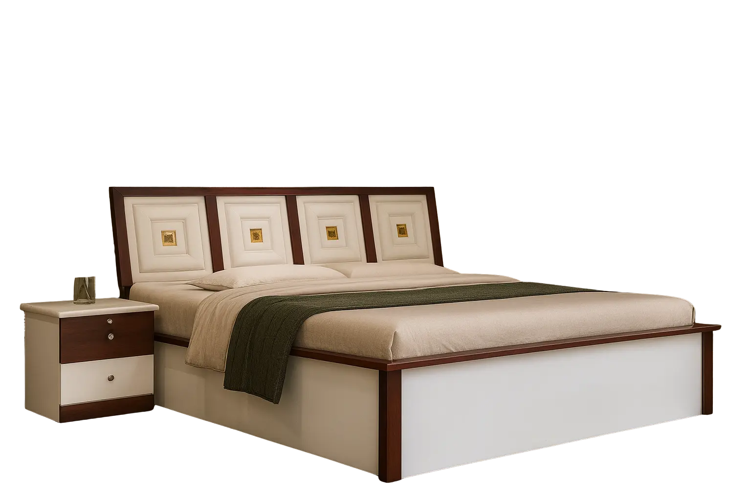 The Paradise Bed reflects modern luxury with a timeless touch. Made from solid wood and HDF, it features a graceful dual-tone finish and a refined framed headboard. Its smooth surface and sturdy build create a sense of balance, ideal for bedrooms that value elegance and enduring quality.