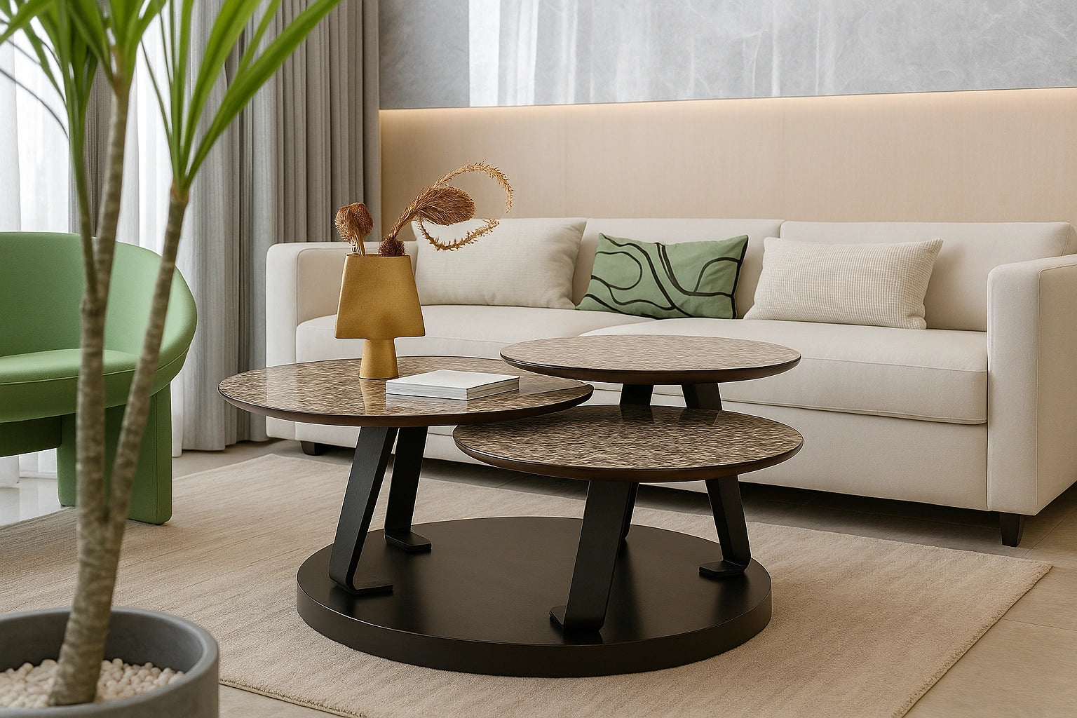 Crafted with a blend of art and utility, the Elliot Centre Table adds character to any space. Its layered ceramic top features a textured pattern that draws the eye, while the metal base offers a solid foundation. This piece is ideal for modern interiors that value design and durability.