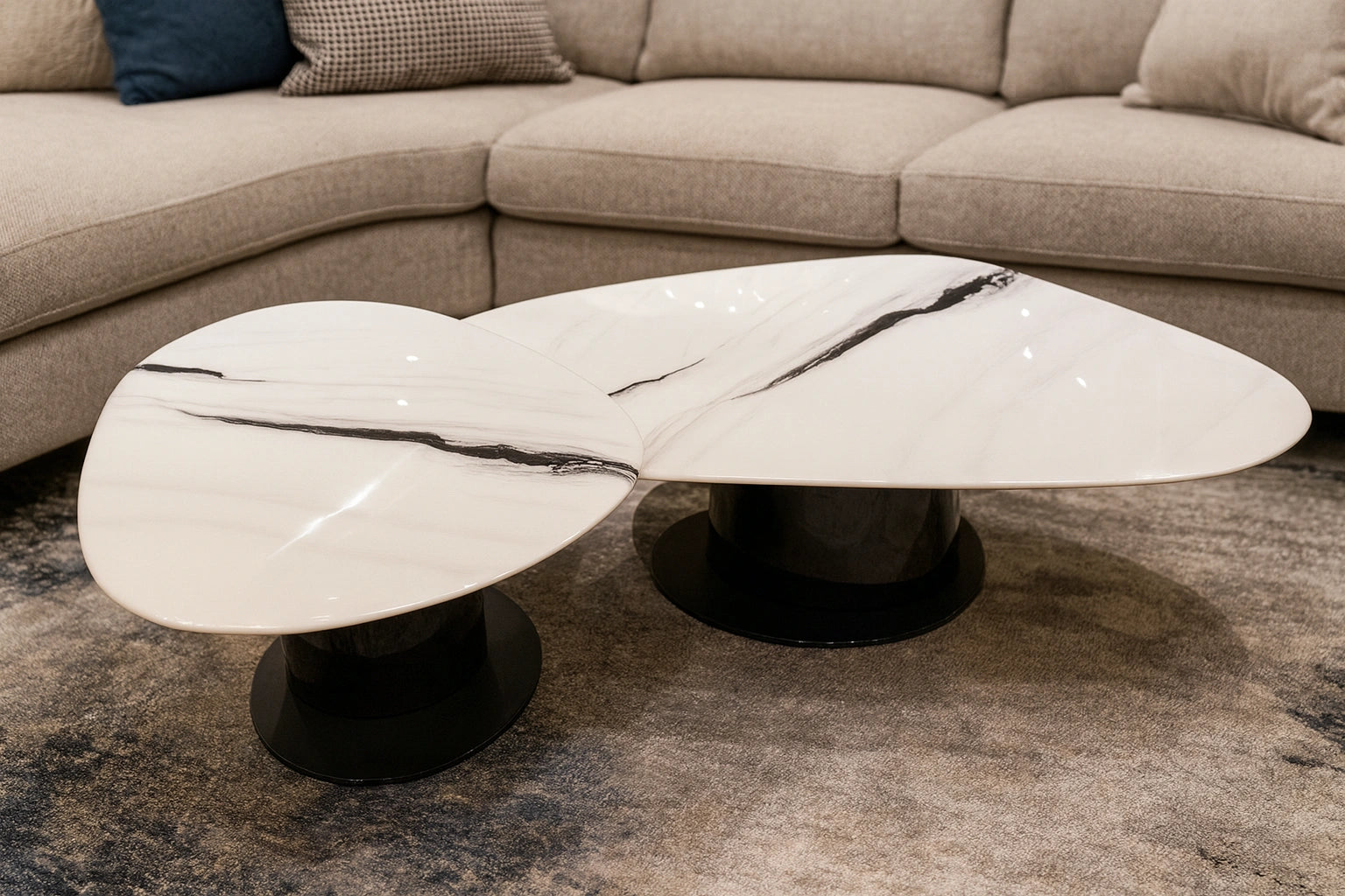 Designed with a balance of artistry and function, the Fredo Centre Table adds grace to any living space. Its sculpted marble top features natural veining that enhances visual depth, while the metal base ensures solid support. The combination creates a refined centerpiece with a modern yet timeless appeal.