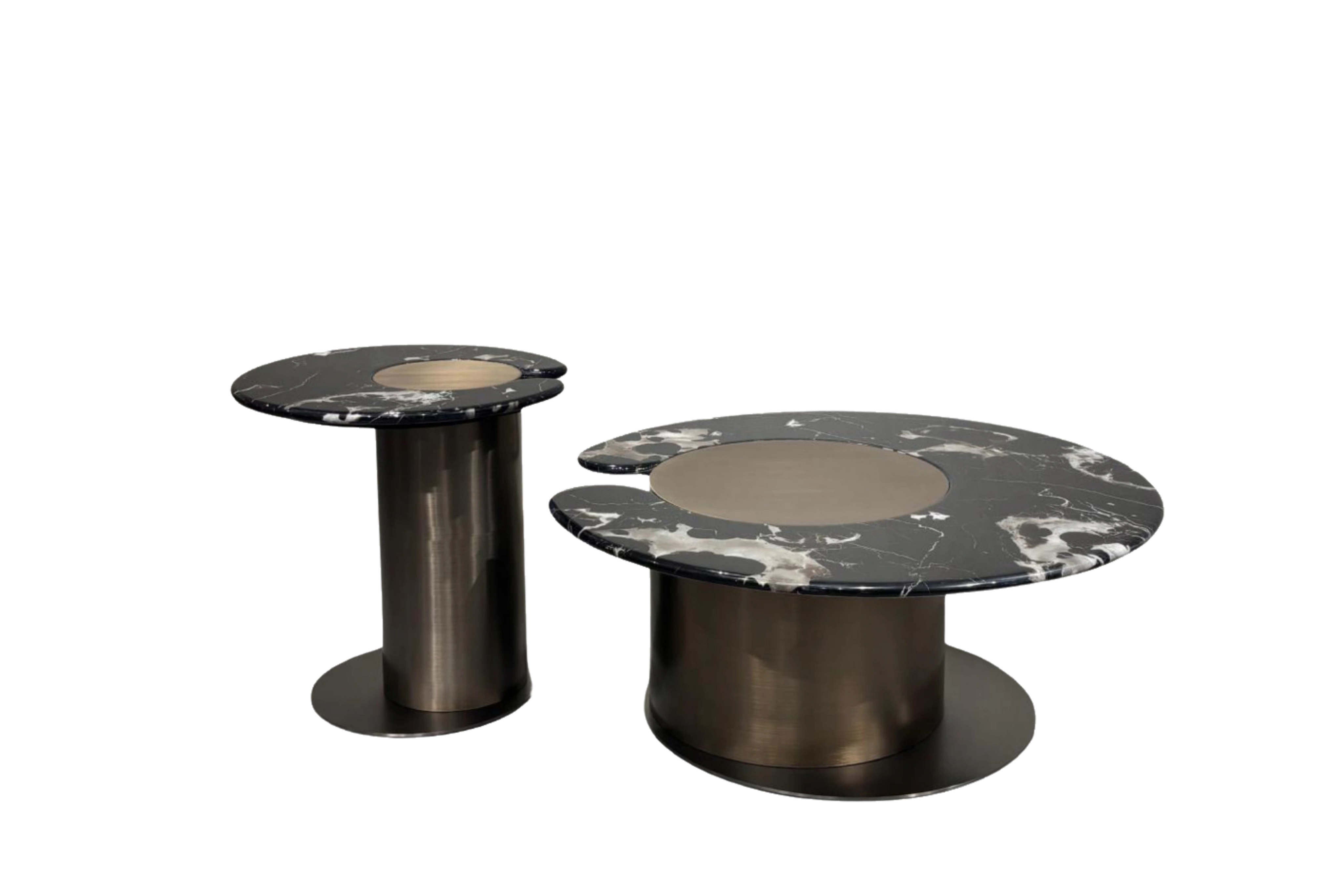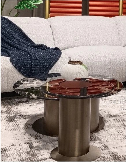 Designed with a contemporary edge, the Leni Centre Table adds sophistication to any room. The marble top highlights natural veining patterns that give it a timeless appeal, while the strong metal base offers durability and poise. Its circular form and balanced proportions make it both functional and visually striking.