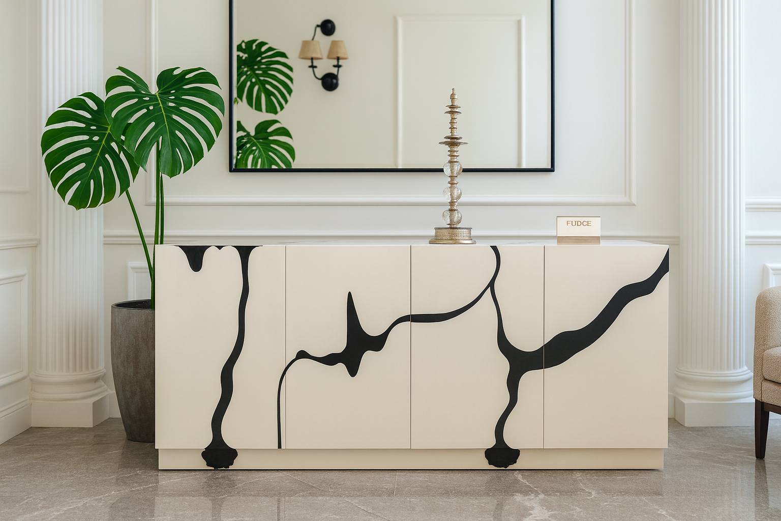 Designed to stand out, the Flow Console Storage captures modern artistry through its fluid, abstract patterns. Crafted with precision, it merges form and function beautifully, offering generous storage within a sculptural frame. Perfect for premium interiors, this piece enhances any space with its bold design and seamless high-quality craftsmanship.