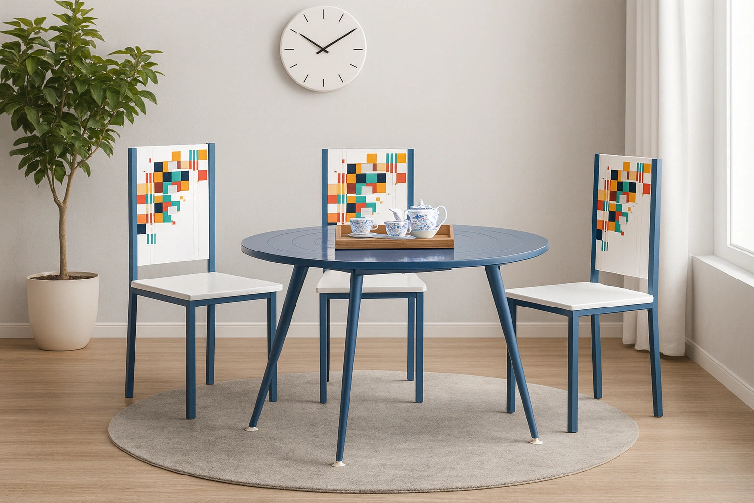 Bright and contemporary, the Alaska dining set adds a cheerful charm to your dining space. Its round form and playful color tone make it both stylish and functional. Designed with durable materials, it blends practicality with modern design, creating a perfect setting for casual meals or warm family gatherings.