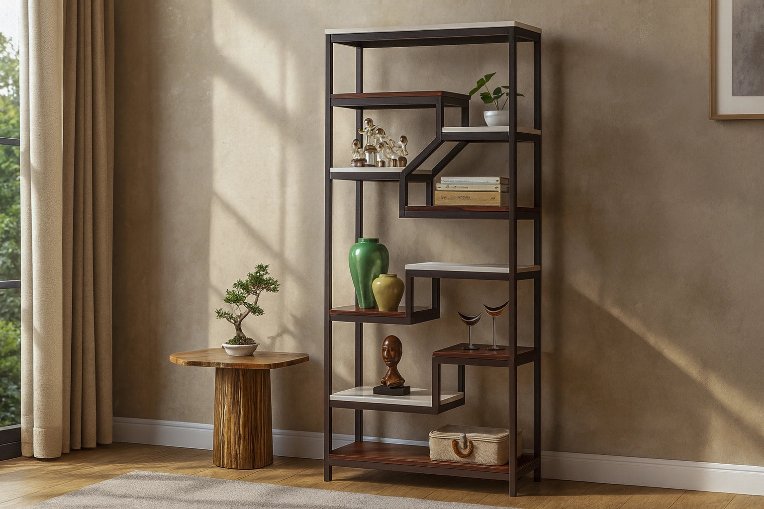 Add a creative edge to your space with the Puzzle display unit. Its geometric form blends art and function, offering ample space for books, plants, and decor. The open layout creates visual depth, while the modern design brings sophistication and structure to contemporary living rooms, offices, or creative studios.