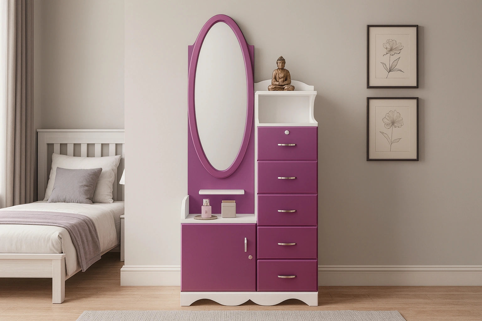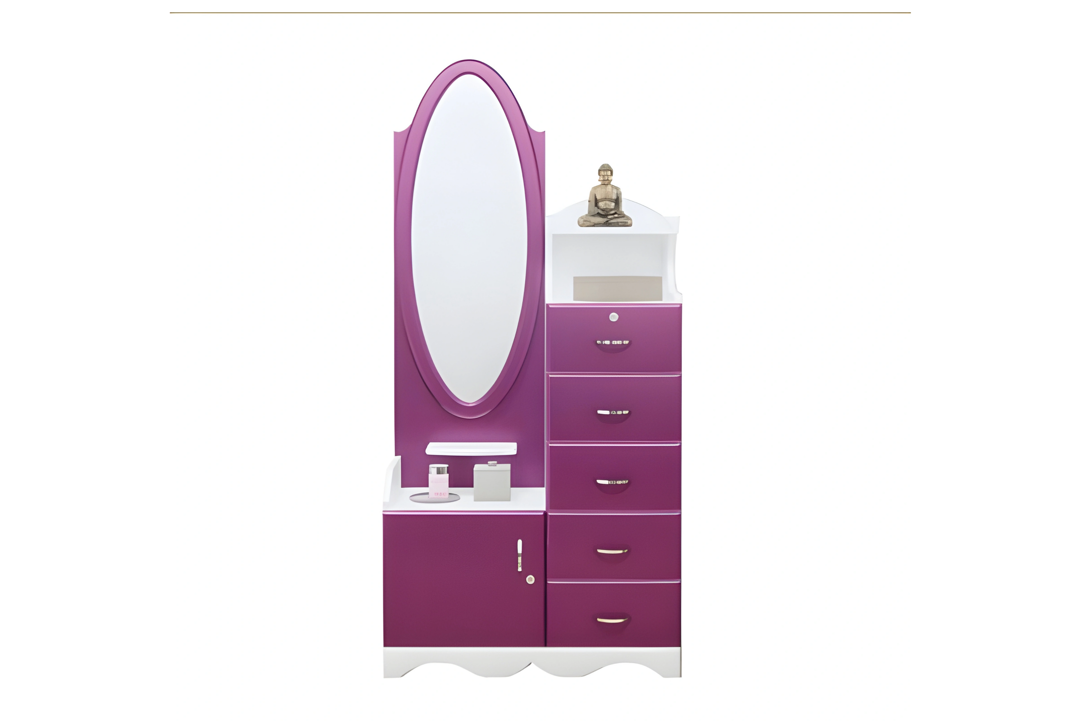 Designed with modern appeal, Moon 3 brings together beauty and function in a single form. The tall oval mirror complements its sleek structure, while spacious drawers offer smart storage for essentials. Its rich color combination and polished finish make it a standout addition to any contemporary bedroom.