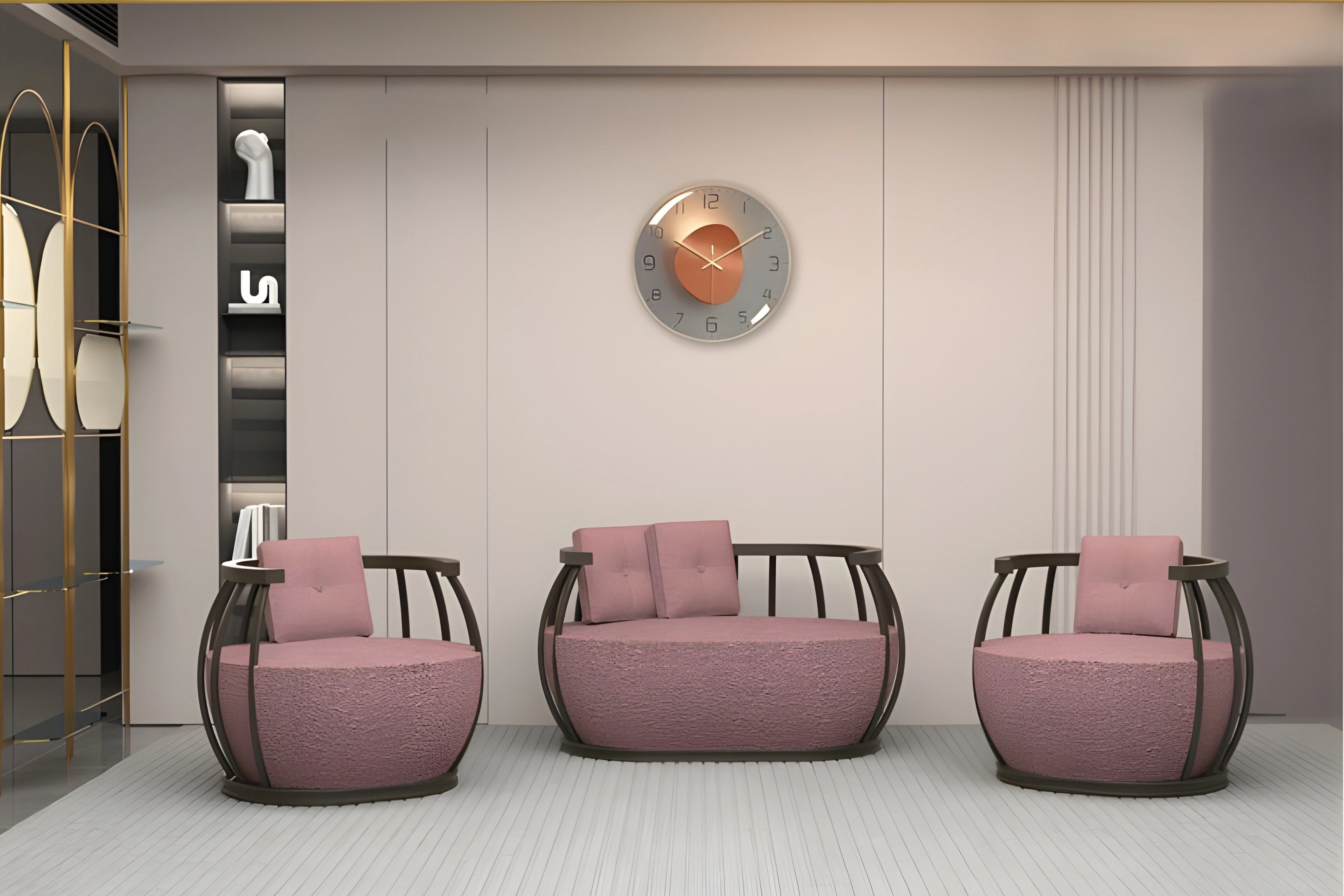 Created with an artistic touch, the Daisy sofa adds a refined charm to modern interiors. Its round, sculptural form paired with soft boucle fabric ensures both comfort and sophistication. Supported by a sturdy golden shower wooden frame, this 4-seater sofa blends elegance, durability, and design for a timeless statement.