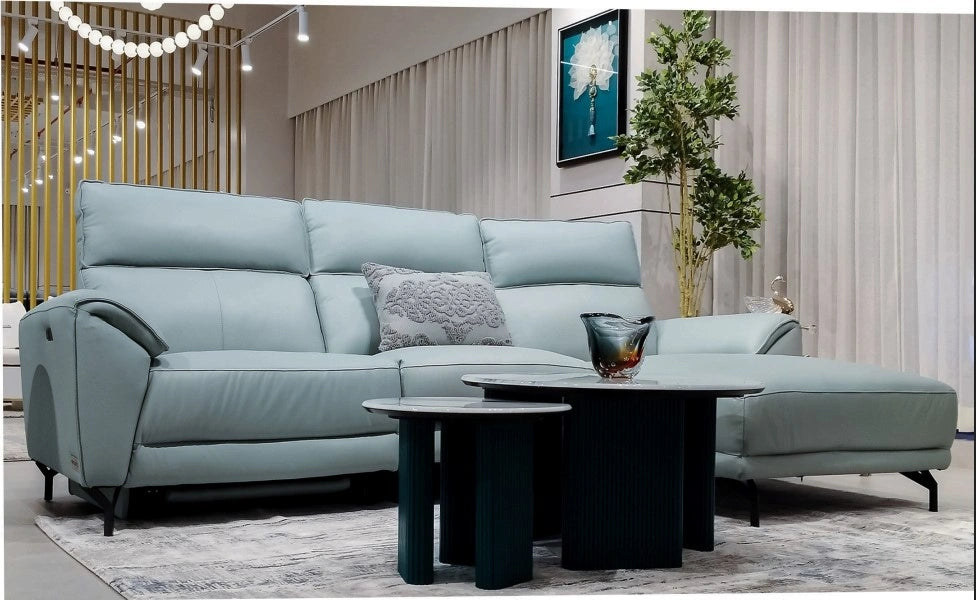 Designed for modern comfort, the Vegas sofa adds elegance and ease to any living room. This 3-seater features one reclining seat for personalized relaxation. Upholstered in smooth vegan leather and supported by sleek metal legs, it blends durability, luxury, and style to create a perfect setting for daily comfort.