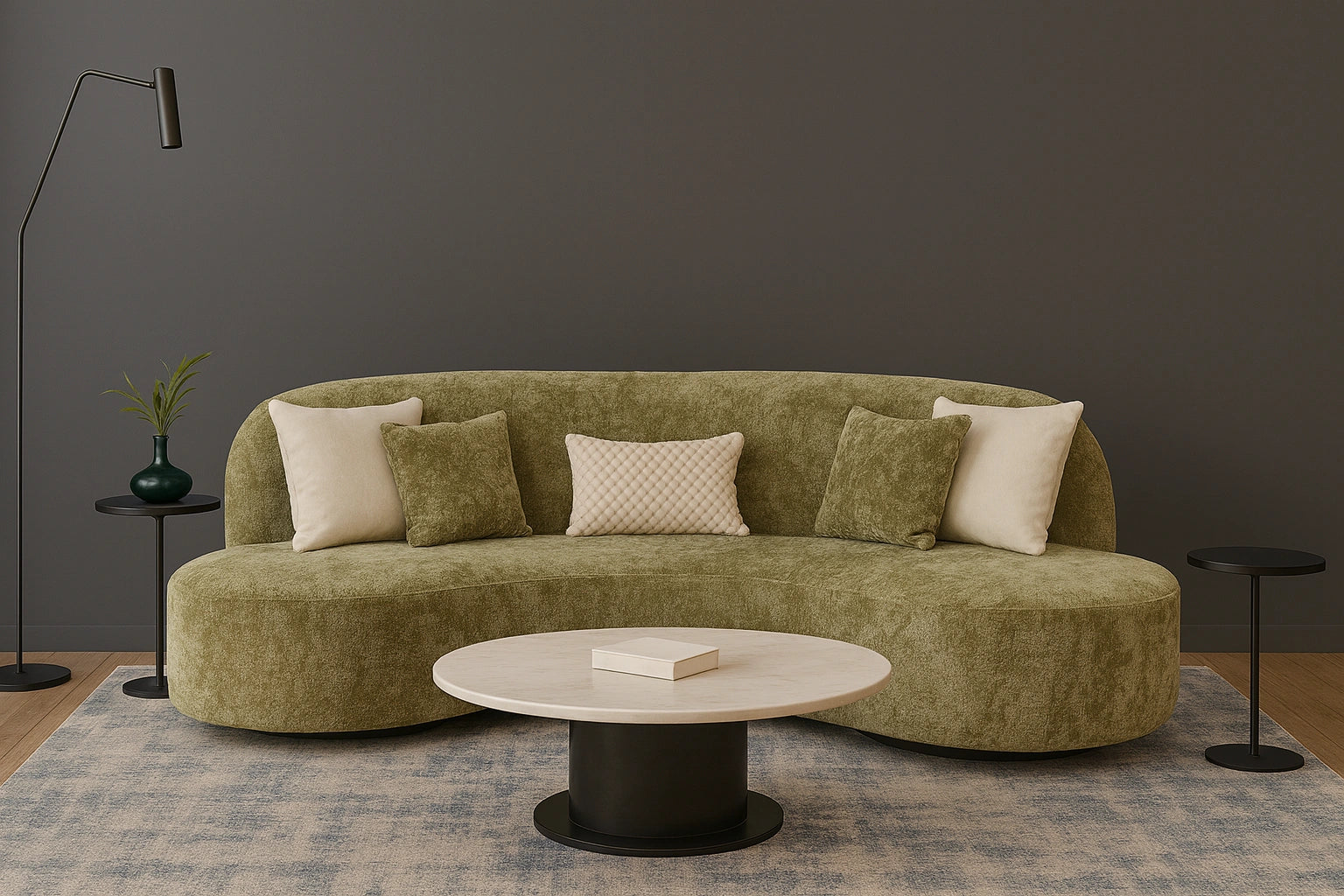 Designed with a touch of modern charm, the Heritage sofa blends comfort with timeless elegance. Its smooth curves and soft boucle fabric create a warm, inviting look. Supported by sturdy metal legs and a golden shower wooden frame, this sofa adds character and sophistication to any contemporary living space.