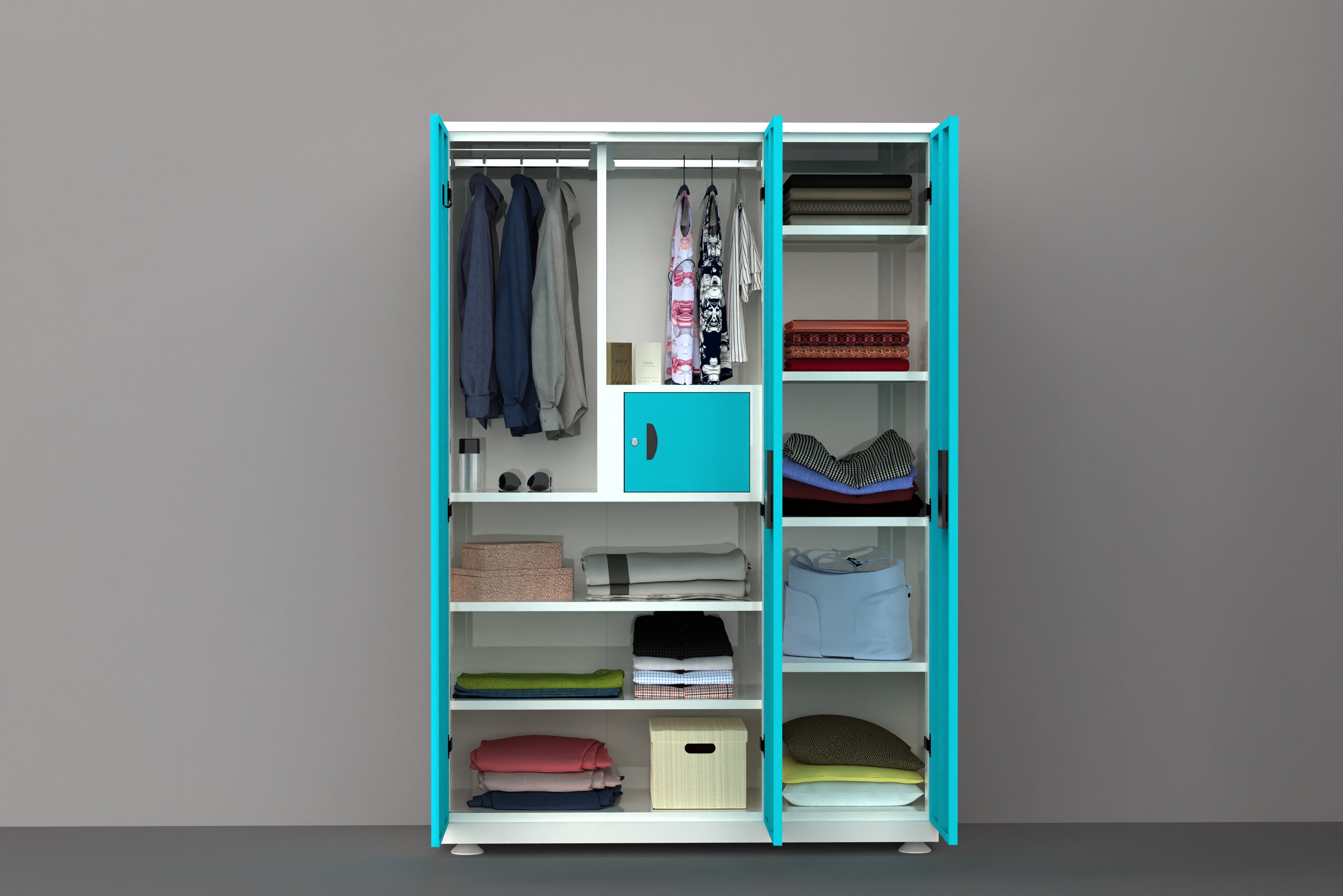 PF 12 Steel Almirah is a spacious three-door wardrobe made from premium heavy-gauge steel with durable powder-coated finish. It includes wide hanging section, multiple shelves, secure internal locker, and smooth storage compartments. Strong hinges, branded locking system, and adjustable legs ensure stability, safety, and long-lasting organized storage.