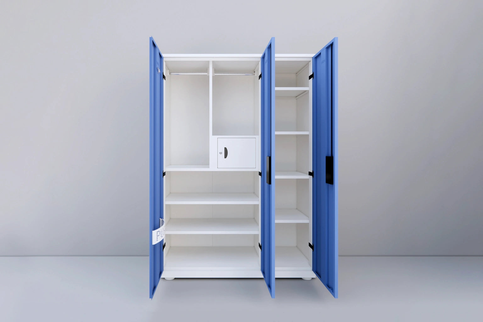 Designed for efficiency and modern appeal, the PF12 3Door Almirah provides ample storage with a clean, stylish look. Built from durable steel, it ensures strength and longevity. The premium metal locks add reliability, while the UT Blue finish brings a calm and professional tone to your interior space.