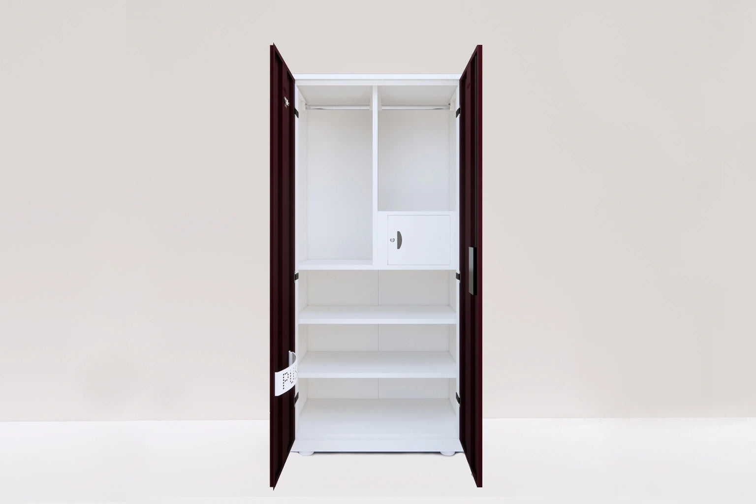 Designed with a focus on practicality and modern aesthetics, the PF3 2 Door Almirah offers dependable storage with a sleek profile. Its sturdy steel frame guarantees long term strength, while the premium metal lock ensures safety. The rich coffee color adds warmth and sophistication, fitting seamlessly into any contemporary interior.