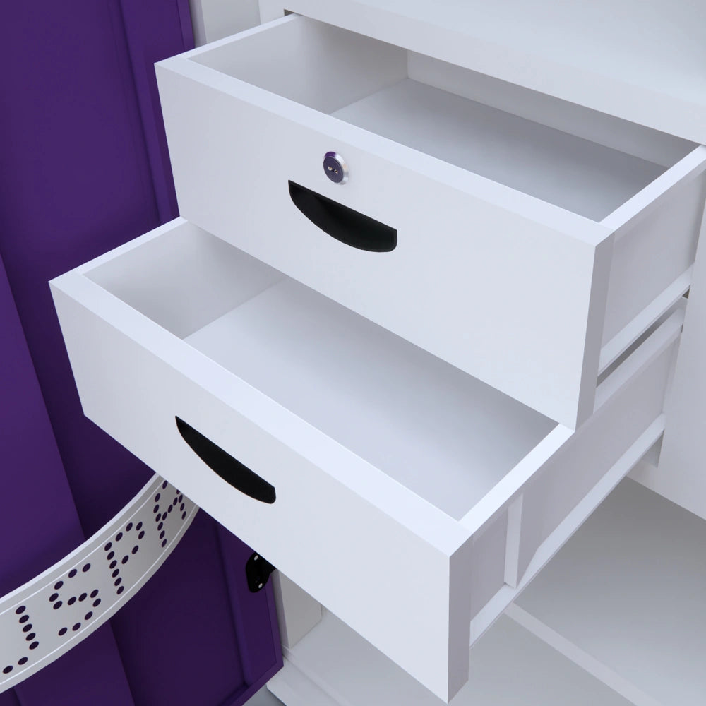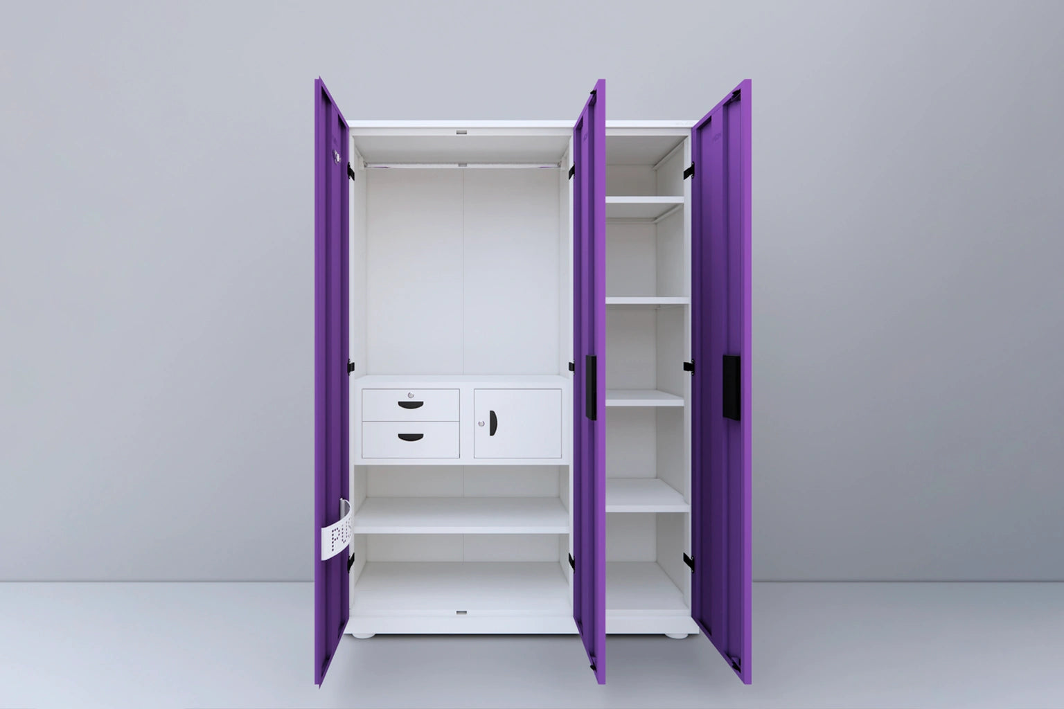 Bringing a touch of elegance to your space, the PF4 Almirah combines sturdy design with vibrant style. The deep purple tone adds a modern edge while its strong build ensures lasting performance. With premium locks and ample storage, it offers both practicality and aesthetic balance.
