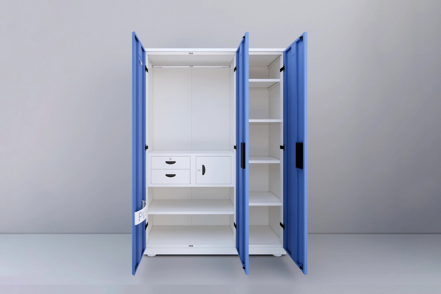 The PF6 Almirah blends durability with modern appeal. Made from high-quality steel and finished in a refreshing UT Blue shade, it brings a clean and bold look to any interior. Its premium metal locks provide strength and safety, making it a reliable choice for organized and secure storage.