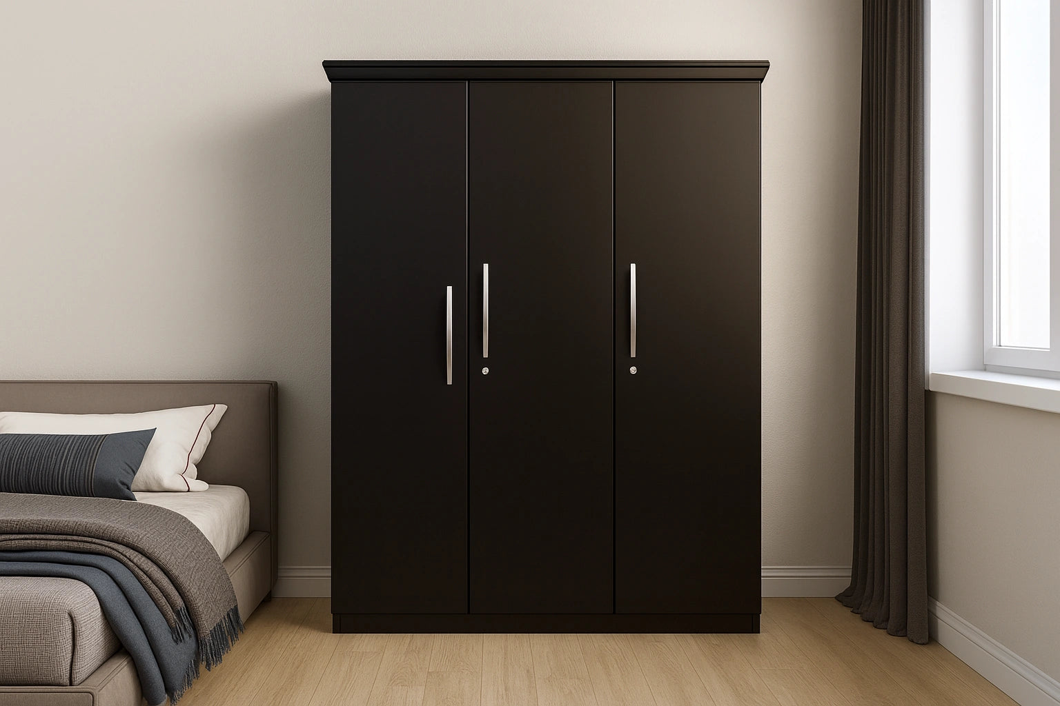 Built with a focus on timeless elegance, the Vienna wardrobe adds depth and sophistication to any bedroom. Its sleek dark finish, minimal design, and tall handles create a refined modern appeal. Offering ample storage, it blends functionality with understated luxury for an effortlessly organized living space.
