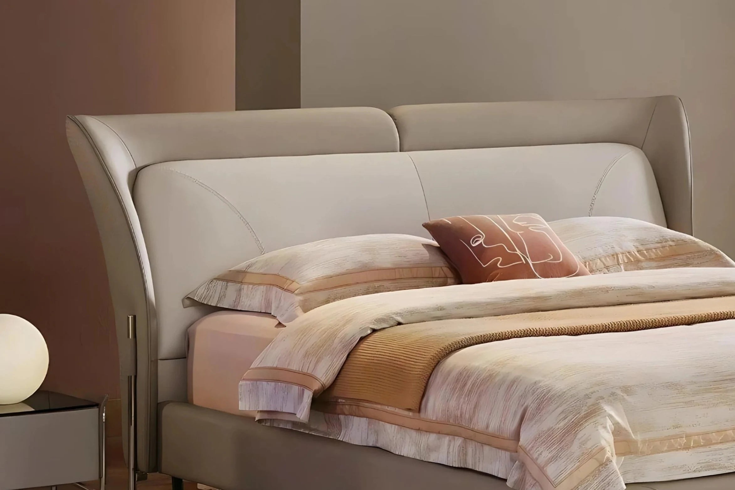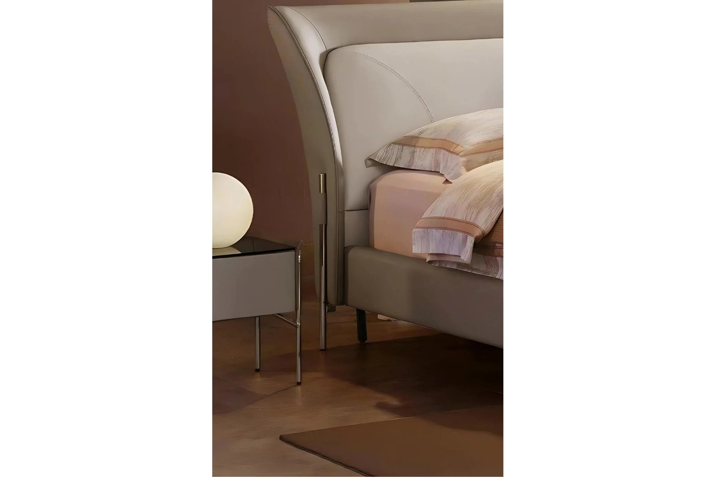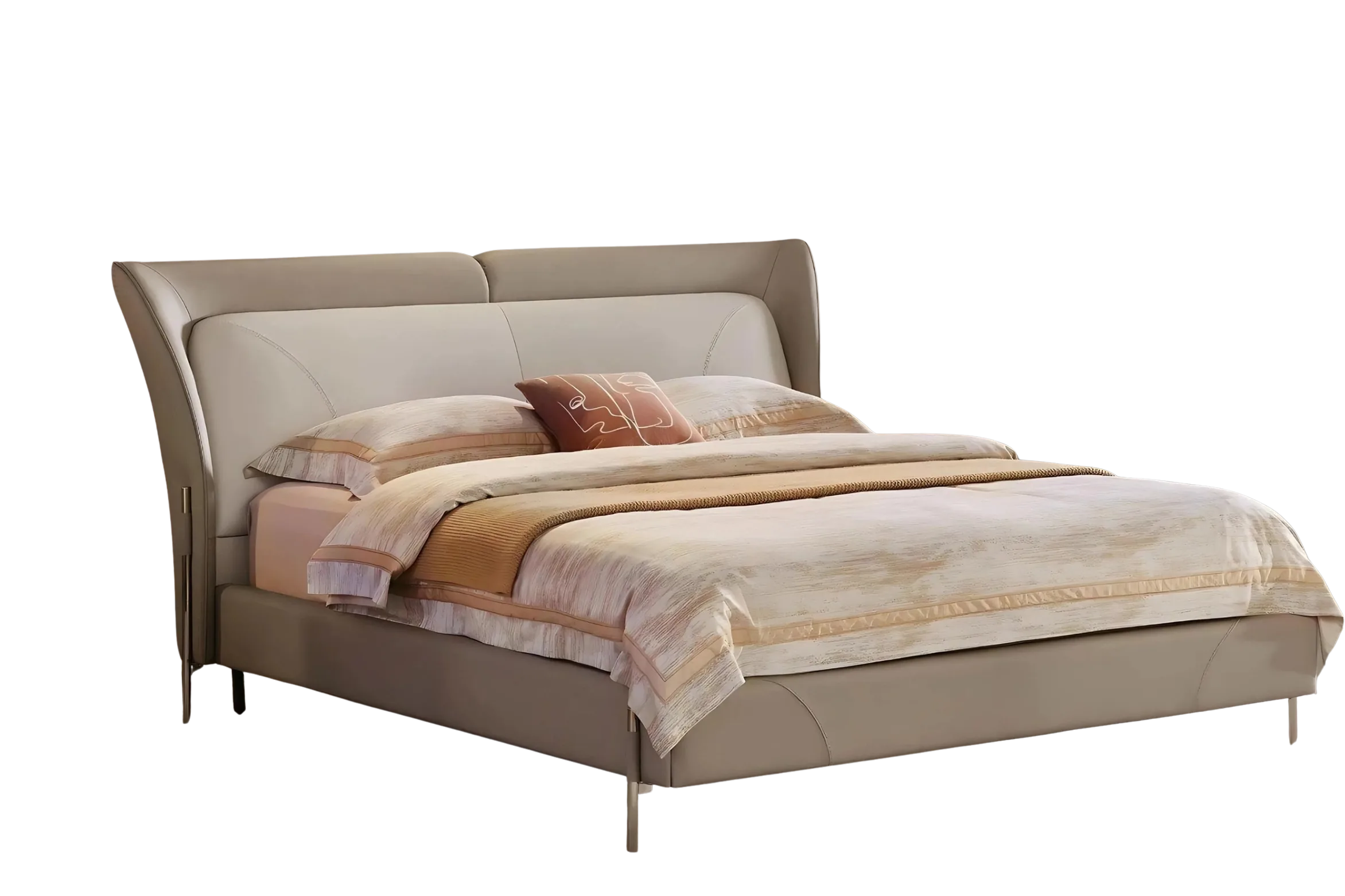 This elegant bed is crafted from premium HDF board and solid wood, upholstered in soft Nappa leather for a luxurious feel. The ergonomic headboard offers superior back support, while high-density foam ensures plush comfort. Supported by sleek metal legs, its durable frame combines timeless sophistication with long-lasting strength and style.
