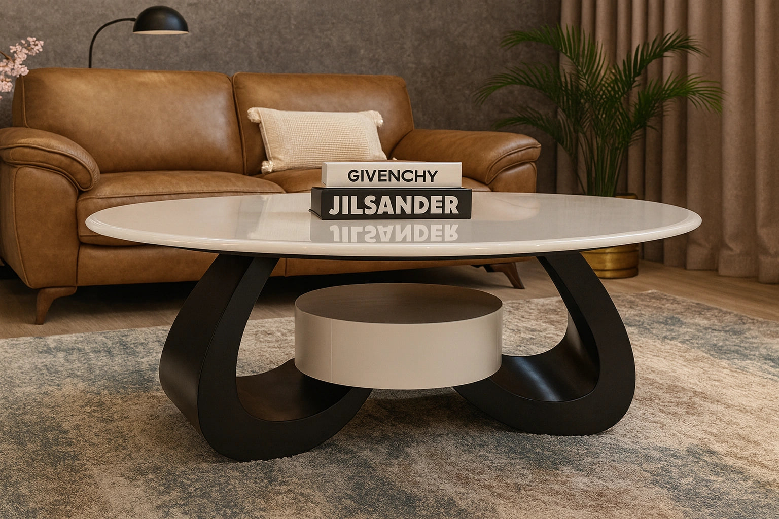 Brayden Centre Table embodies refined elegance with a focus on modern form and balance. Its marble top pairs beautifully with the sculpted HDF base, creating a bold yet graceful statement. The clean lines and artistic flow make it an ideal addition to sophisticated and contemporary interiors.