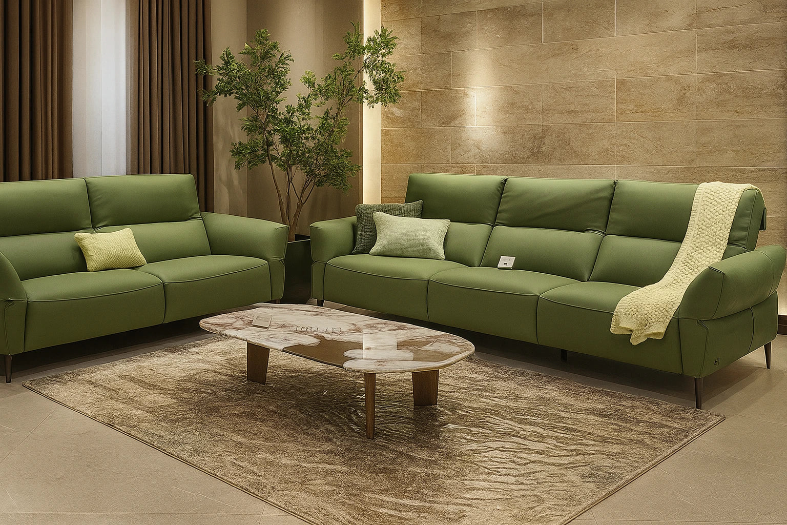Elegant in form and crafted for everyday comfort, the Fenice sofa brings style and function together. Made with Nappa leather, it offers a luxurious seating experience. Supported by strong metal legs and adjustable armrests, this 4+3 seater sofa blends durability, flexibility, and sophistication in one refined design.