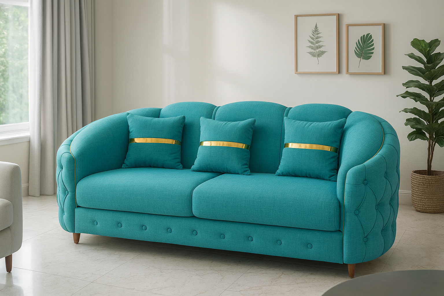 Jasmin 2 is a stylish three-seater sofa that instantly brightens contemporary living rooms. The soft premium fabric, plush high-density foam cushions and supportive curved back offer exceptional comfort. A strong wooden frame, sleek metal legs and decorative pillows complete this modern design, perfect for relaxed family lounging or entertaining guests.