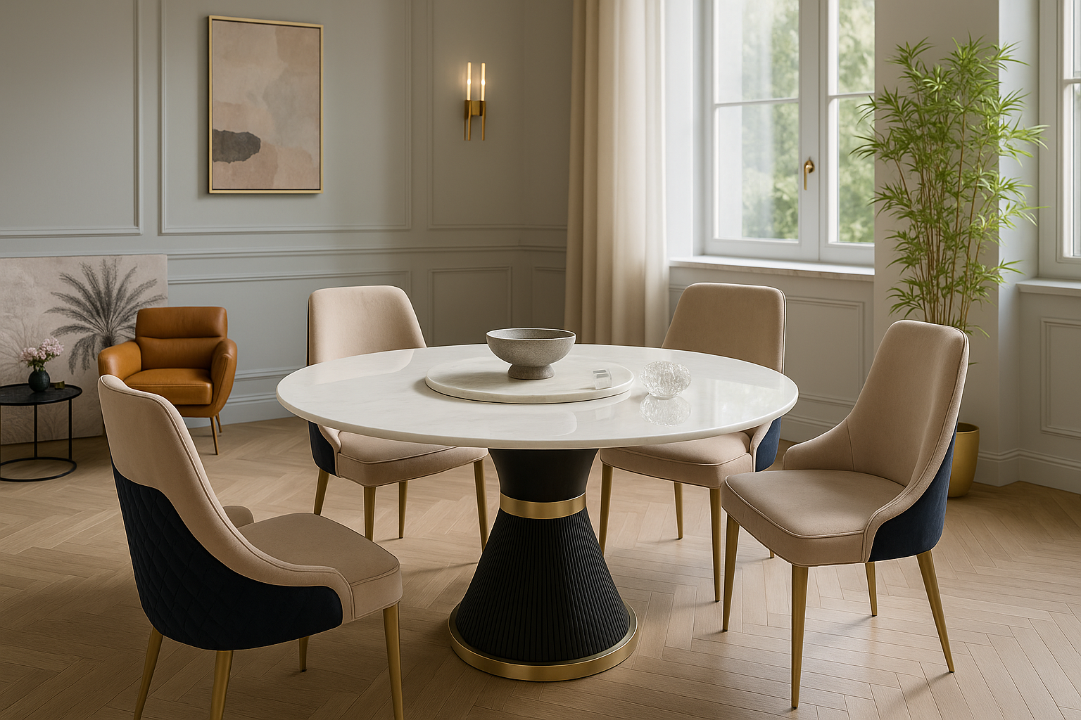 Crafted to bring elegance and versatility to modern dining spaces, the Opal Dining Table a stunning movable Onyx marble top paired with a sturdy metal and HDF base. Its sleek circular form and premium materials create a perfect harmony of beauty, durability, and refined contemporary design.